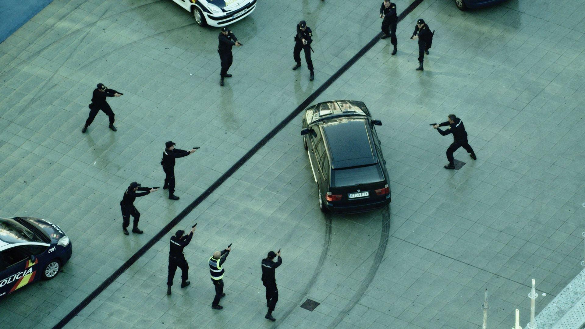 El desconocidoCarlos, ejecutivo de banca, comienza su rutinaria mañana llevando a sus hijos al colegio. Cuando arranca el coche, recibe una llamada anónima que le anuncia que tiene una bomba debajo de su asiento. La voz de un desconocido le comunica que tiene apenas unas horas para reunir una elevada cantidad de dinero; si no lo consigue, su coche volará por los aires.