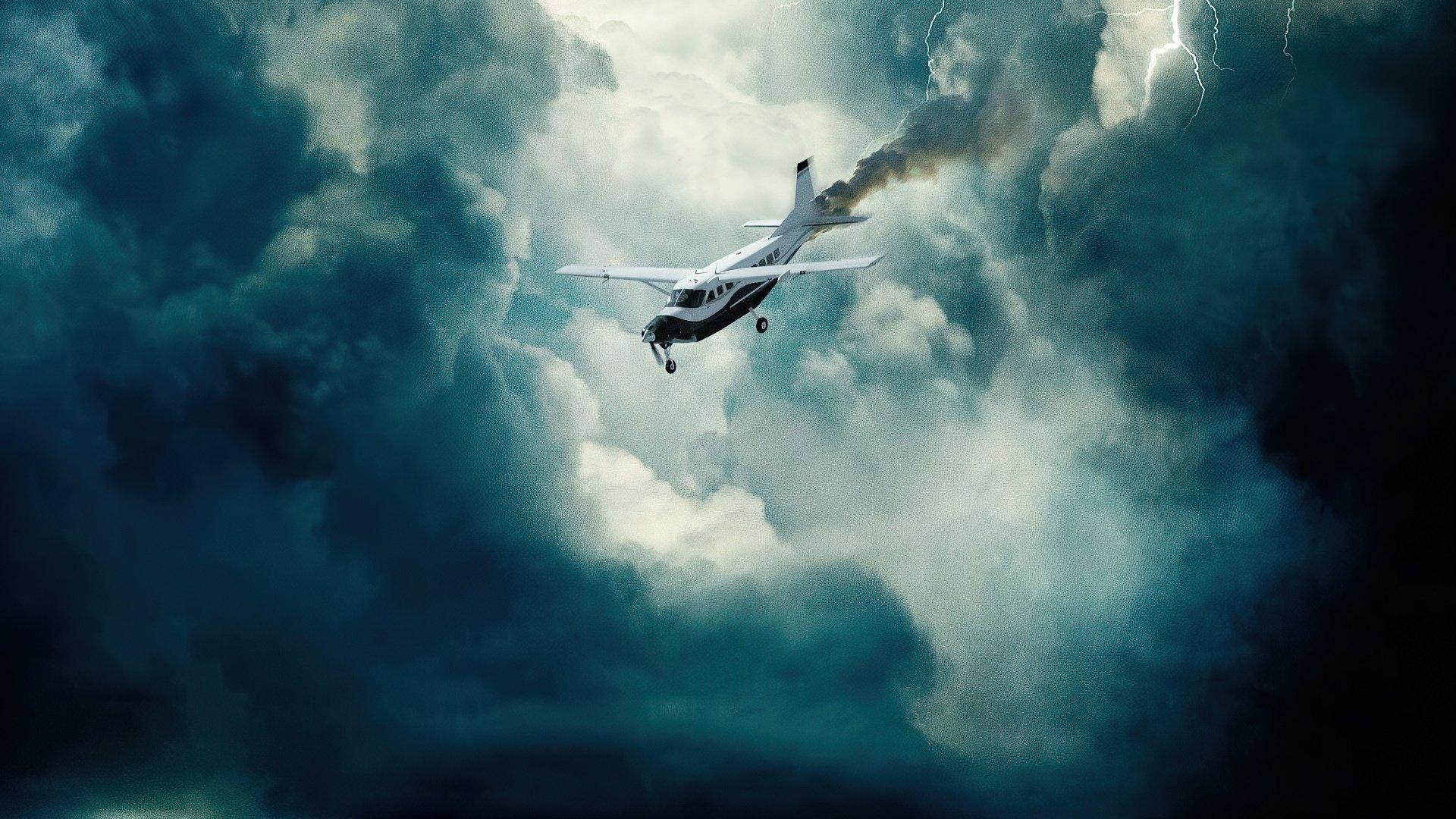 Una pareja que viaja en un avión pequeño para asistir a una boda en una isla tropical debe luchar por sus vidas después de que su piloto sufre un infarto.
